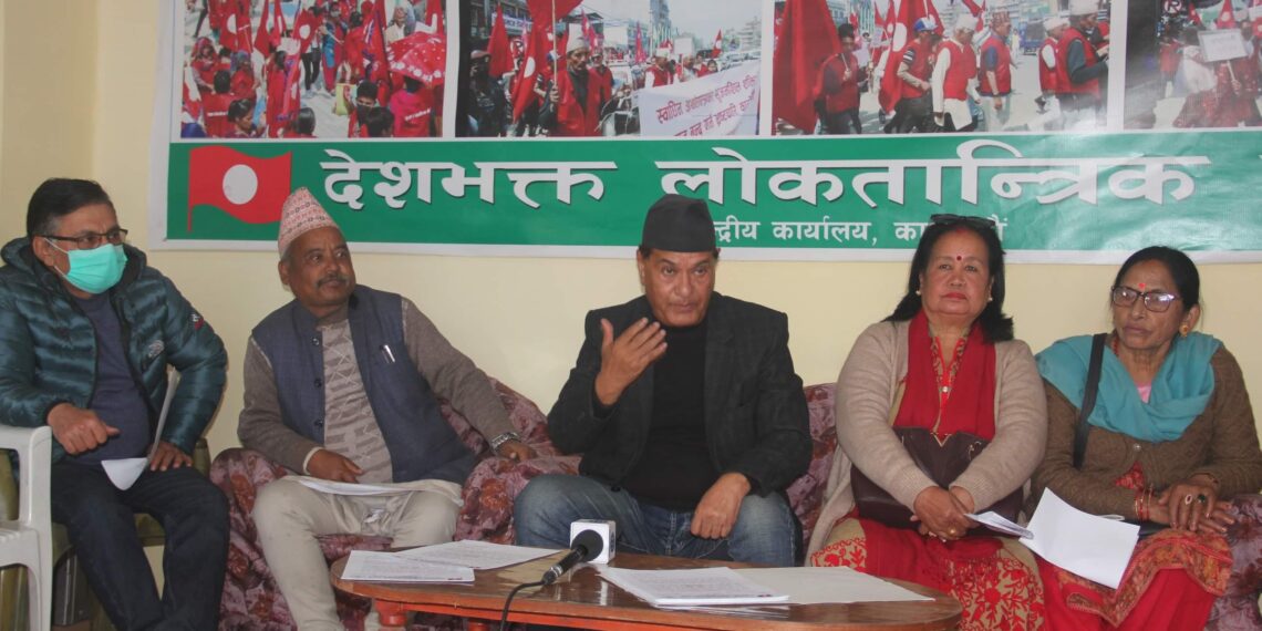 काठमाडौं । शान्ति, उन्मुक्ति,आर्थिक समृद्धि र सामाजिक न्यायका लागि नयाँ राष्ट्रिय एकता कायम गरौ,संविधान परिमार्जन सभाको गठन गरौ भन्ने मुल नाराका साथ देश भक्त लोकतान्त्रिक पार्टीले यहि पुस ३ गते राजधानीको रत्नपार्क शान्ति बाटिकामा कोण सभा गर्ने भएको छ। पार्टी अध्यक्ष मनमोहन शमसेर राणा द्वारा जारी प्रेस बिज्ञप्तिमा भनिएको छ,ू १२ बुँदे समझदारीबाट विकसित राजनीतिले देश र जनतालाई थिलथिलो बनाउदै नेपाल र नेपाली जनताको भाग्य र भबिस्यलाई अनिश्चित गरिदिएको छ। अध्यक्ष राणाले यस्तो बिसम परिस्थितिमा नयाँ राष्ट्रिय एकता प्राप्त गरेर अगाडी बढ्नुको विकल्प नरहेको समेत प्रष्ट पारे।मुलुकमा अहिले देखा परेको राजनितीक समस्या समाधानको लागि राष्ट्रिय सहमतिलाई अगाडि नल्याई राज्य शक्तिको आडमा यसलाई रोक्न खोजे देशमा बिस्फोट हुने समेत बताए।एक अर्को प्रसङ्गमा अध्यक्ष राणाले अहिलेको सविधान प्रति असहमति जनाउने सबै दल,पार्टीहरुलाई समेत यस कार्यक्रममा उपस्थित भइ सफल बनाउन अनुरोध गरेको छ।अहिले पुर्ब राजा समर्थकहरुले सडक तताउदैमा राजा नआउने यदि जनताले राजसस्था नै खोजेको भए पनि संविधान परिमार्जन गरेर मात्र राजा ल्याउन सम्भाव हुने अध्यक्ष राणाले जनाए।