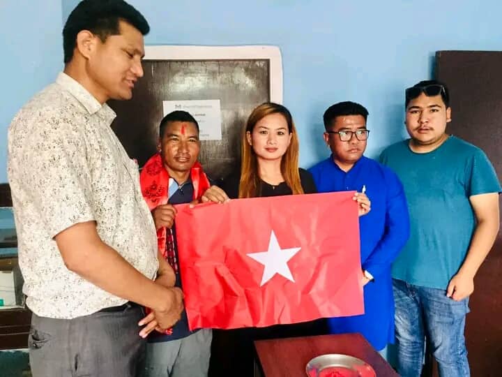आरोही लालवहादुर जिरेललाई युवा संघको तारा अंकित झण्डा हस्तान्तरण।