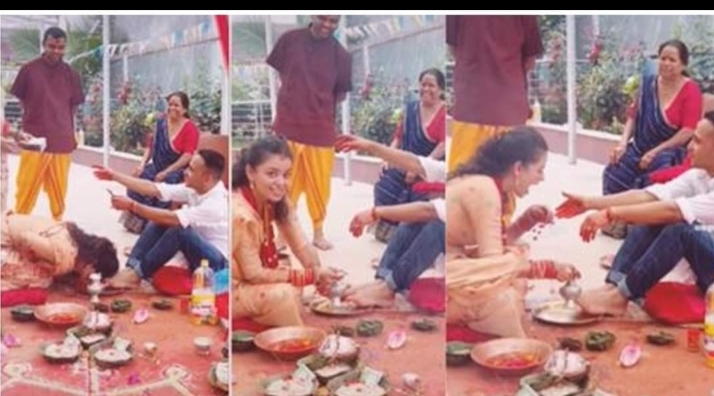 नायिका नीता ढुंगानालाई बिहे गरेर घरलगे लगत्तै बेहुलाले खुट्टाको पानी ख्वाए, घुँडा टेकाएर ढोगाए