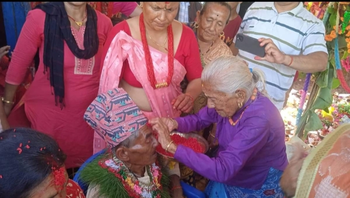छाेराकाे चौरासीमा आँखाबाट खुसिका आँसु झार्दै जम्दार्नी आँबैले छाेरालाई आशिर्वाद दिईन र भाग्यमानि छाेराले एक सय दस वर्षकी आमाबाट शिर निहुर्याएर आशिर्वाद लिए ।