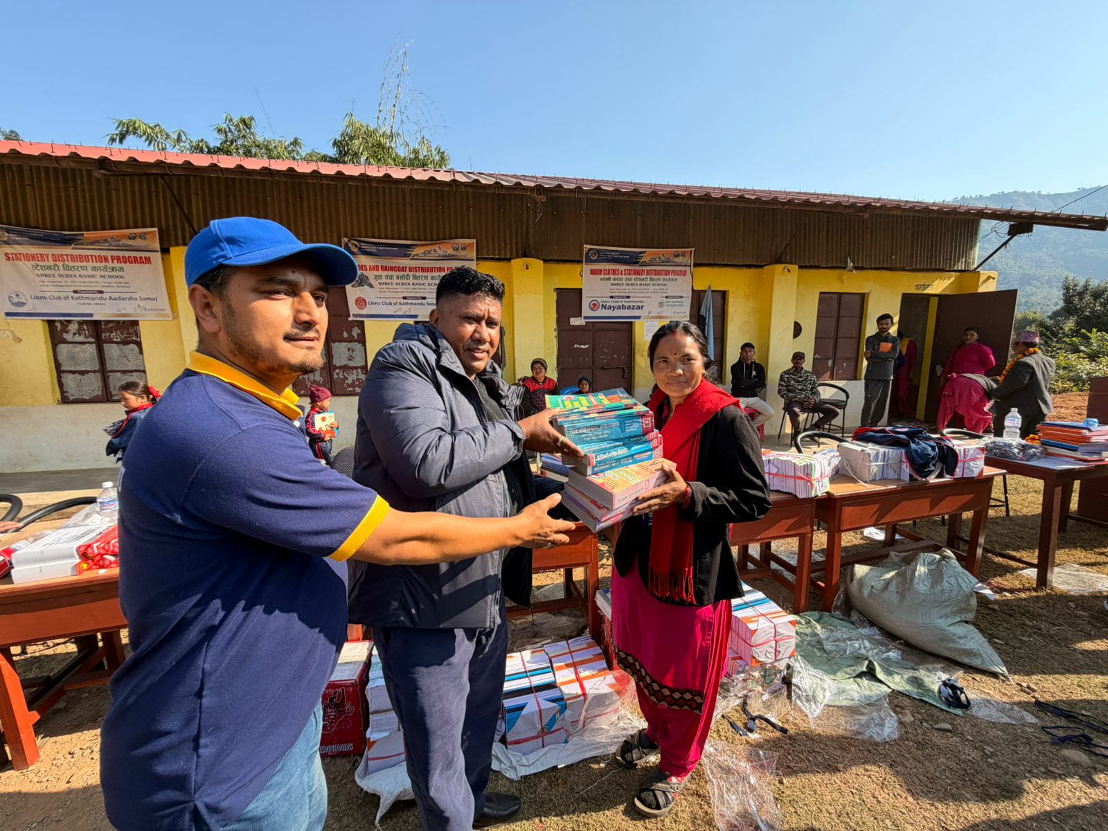 लायन्स क्लबद्वारा विद्यालयलाई शैक्षिक सामग्री तथा न्यानो कपडा वितरण