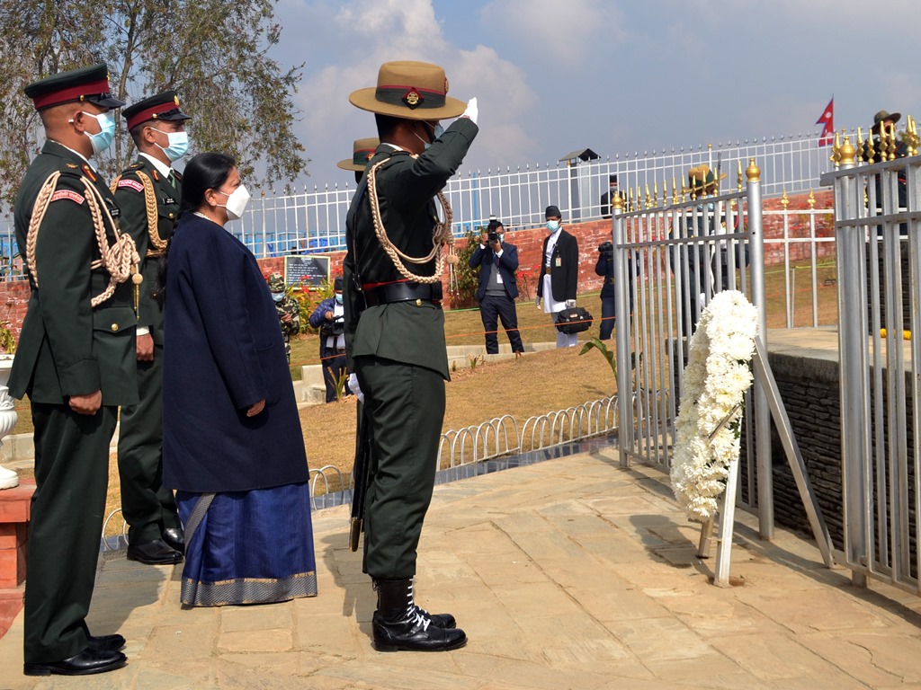 राष्ट्रपति भण्डारीद्वारा काजी पाँडेको सालिकमा माल्यार्पण